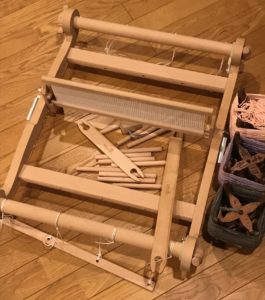 織物を体験し楽しかったという内容をちょこっと年賀状に書いたことで、ある方が、押し入れで眠っているからと、卓上織機を譲って下さったのです。年賀状でご縁がつながっていた方からの嬉しいお便り、そしてポーランド製の素敵な卓上織機との出会いでした!